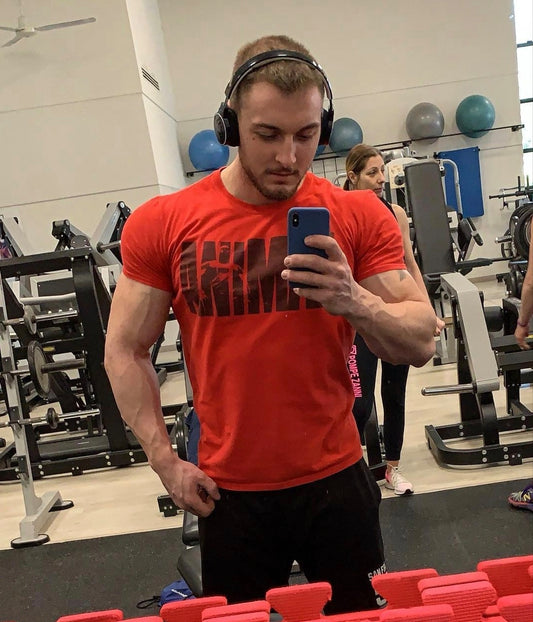 Gymbeam Cherry Red Basic vyriški marškinėliai